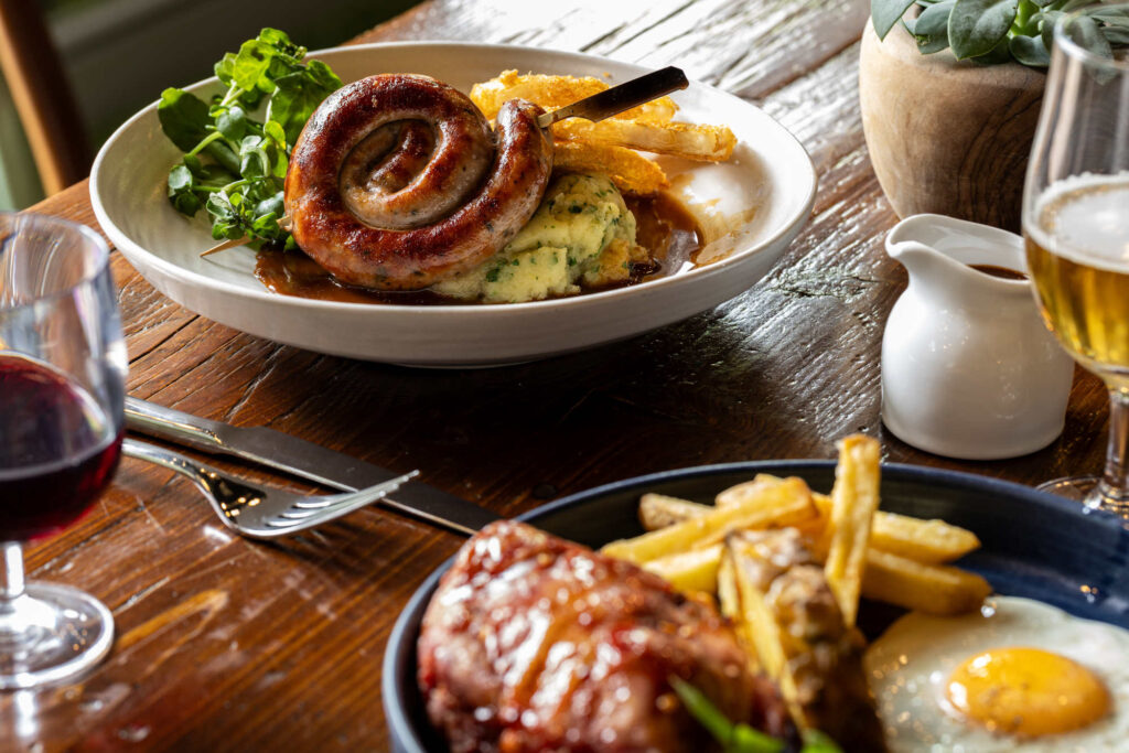 Cumberland sausage ring, herby mash, beer-battered onion rings, gravy | 14.50 927 kcals