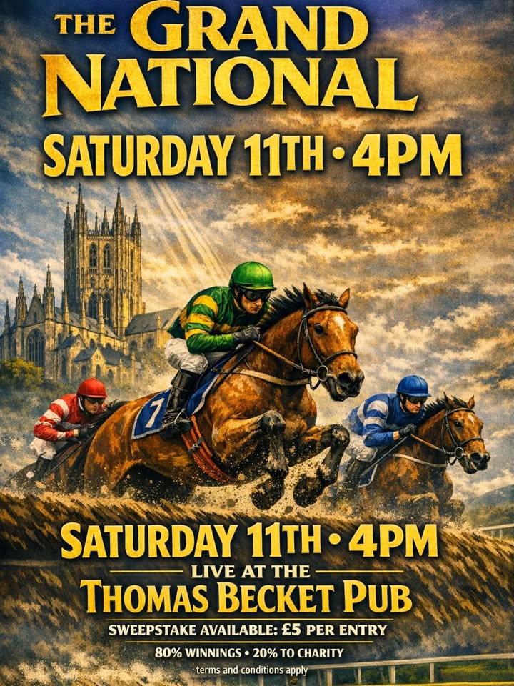 🏇 Grand National day is nearly here! 🏆 Join us at The Thomas Becket to catch all the action live on the big screens 📺 Plus, don’t miss your chance to get involved with our sweepstake – available once the horses have been confirmed. All envelopes are blind drawn. Who will be the winner?👀 Great atmosphere, great company, and a race you don’t want to miss! 🍻 #GrandNational #RaceDay #SweepstakeFun