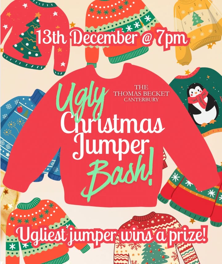 Break out your boldest, brightest, ugliest Christmas jumpers! 🎄✨ Join us on 13th December — ugliest jumper wins 🎁 Plus live music from Adam Green to keep the festive vibes flowing! 🎶 #ChristmasJumperParty #UglyJumper #FestiveFun #LiveMusic #AdamGreen #HolidayVibes #Christmas2025 #ChristmasAtTheBecket #canterburycathedral #thethomasbecket #canterburykent #foodie #LocalPub #booknow #christmascountdown #telegraph #TheThomasBecket #canterbury #thomasbecket #LiveMusic